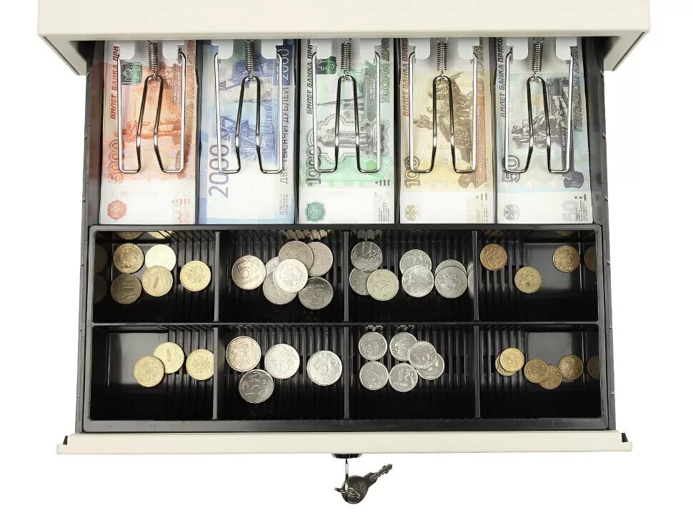 Денежный ящик ККМка светлый PUSH-функция (5 отделений для купюр)