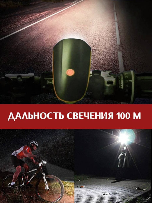 Фонарь на самокат с гудком / Фонарь велосипедный аккумуляторный / Фонарь на руль / светодиодный