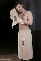 Набор мужской для сауны из хлопка Koral (килт, полотенце) Karna (бордовый), Комплект для сауны