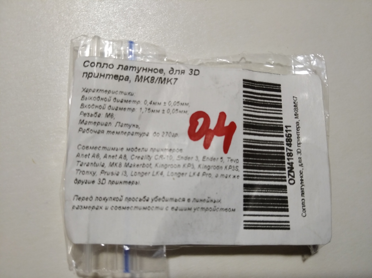 Сопло латунное, 0.4мм, для 3D принтера, MK8/MK7