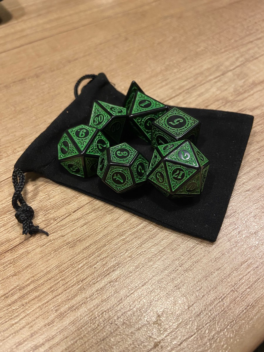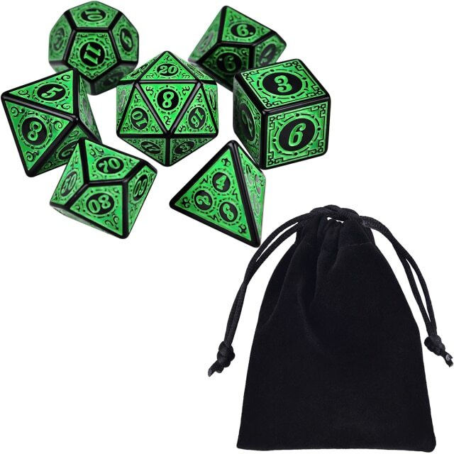 Набор: кубики ДнД, дайсы для D&D (Dungeons and Dragons, ДнД), серия: D&D, "Узор зеленый" с мешочком