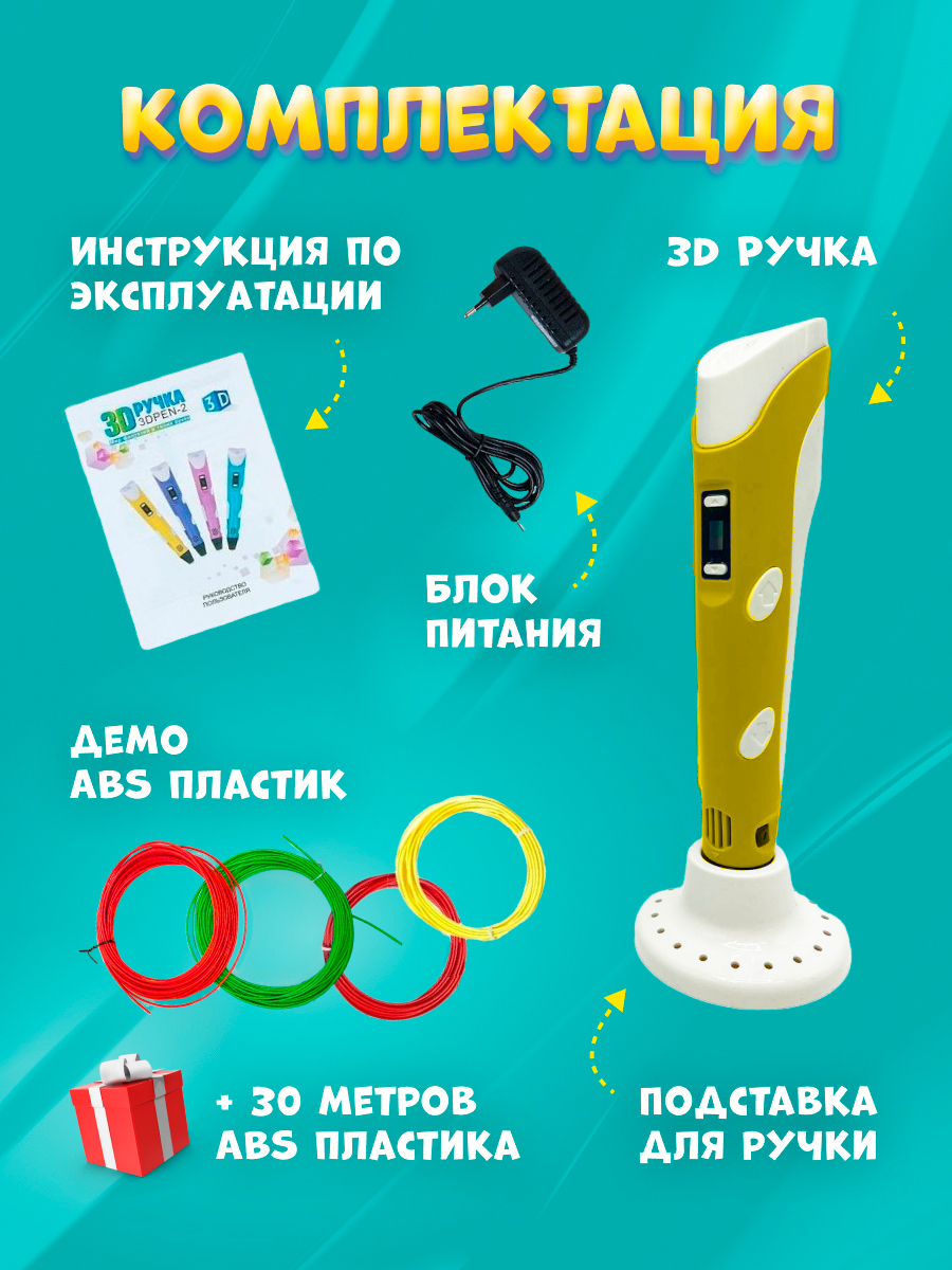 Детская 3D ручка, Ручка с набором пластика, Детский набор для творчества, ПОДАРОК ДЛЯ ДЕТЕЙ