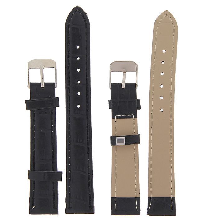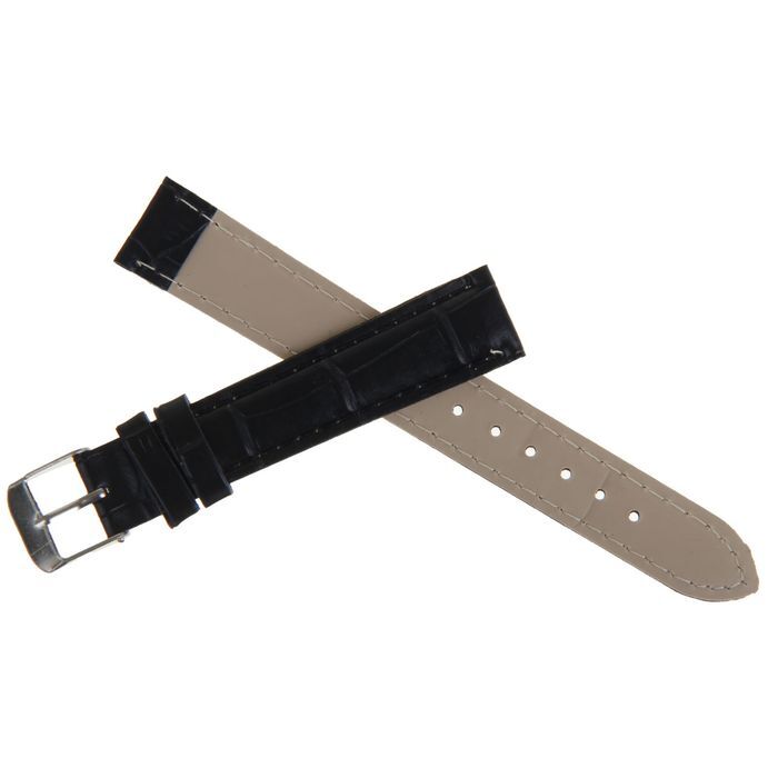 Ремешок для часов, 16 мм, экокожа, фактура рептилия, черный, 19 см