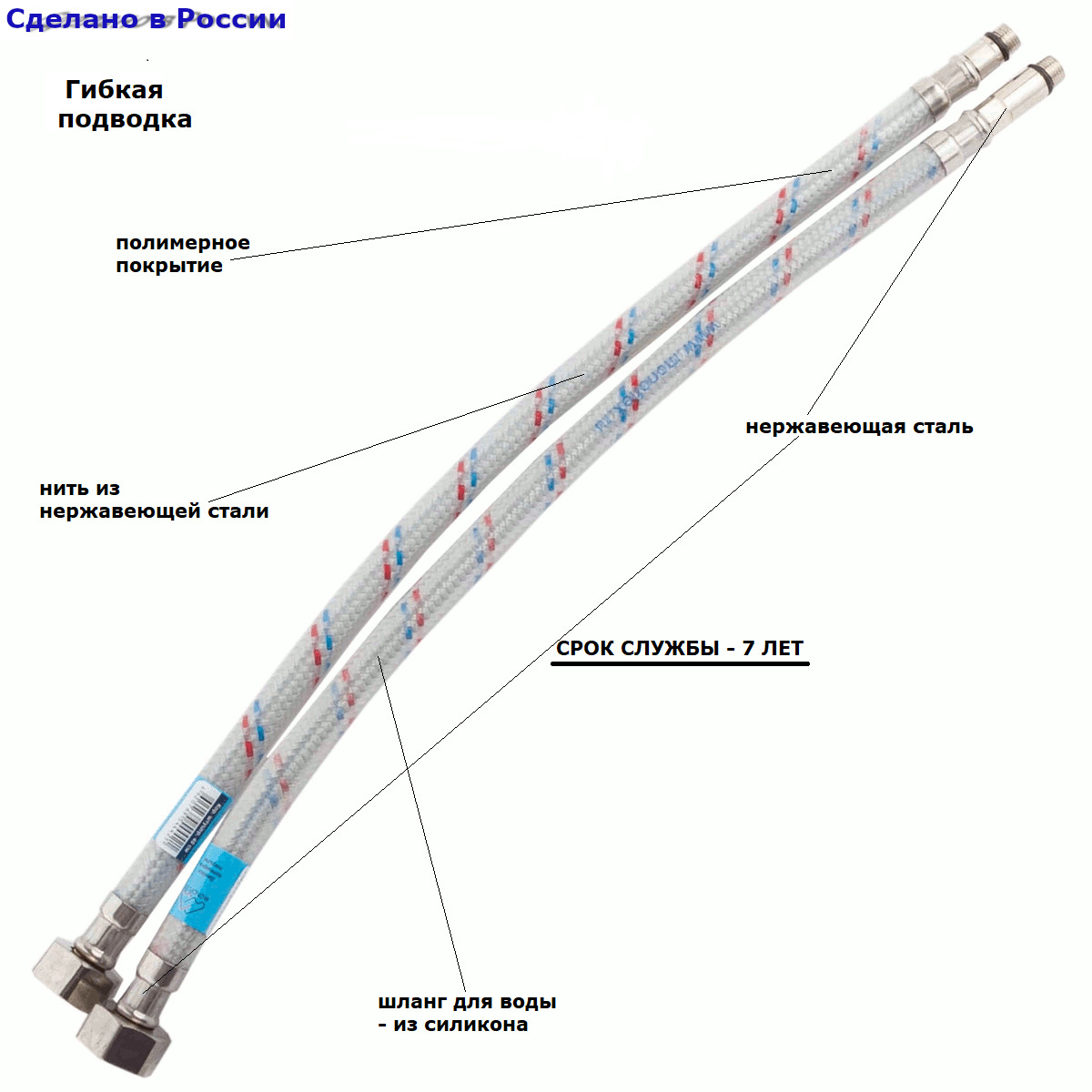 Подводка/шланг для смесителя 1,5м гайка-штуцер 1/2 пара