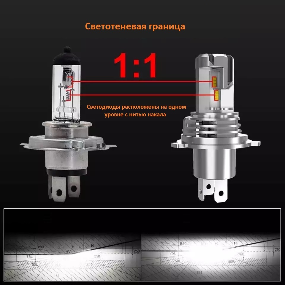Автомобильные светодиодные LED лампы M3 (ближний дальний) цоколь H4,H19 /2шт