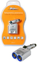 Разветвитель в гнездо прикуривателя, на 3 гнезда + USB, с проводом, блистер, AIRLINE