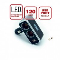 Разветвитель прикуривателя AVS CS211U+USB (на 2 выхода) /20/100/