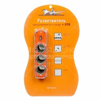 Разветвитель прикуривателя Airline ASP-3U-03 3 гнезда, USB, шнур 70 см