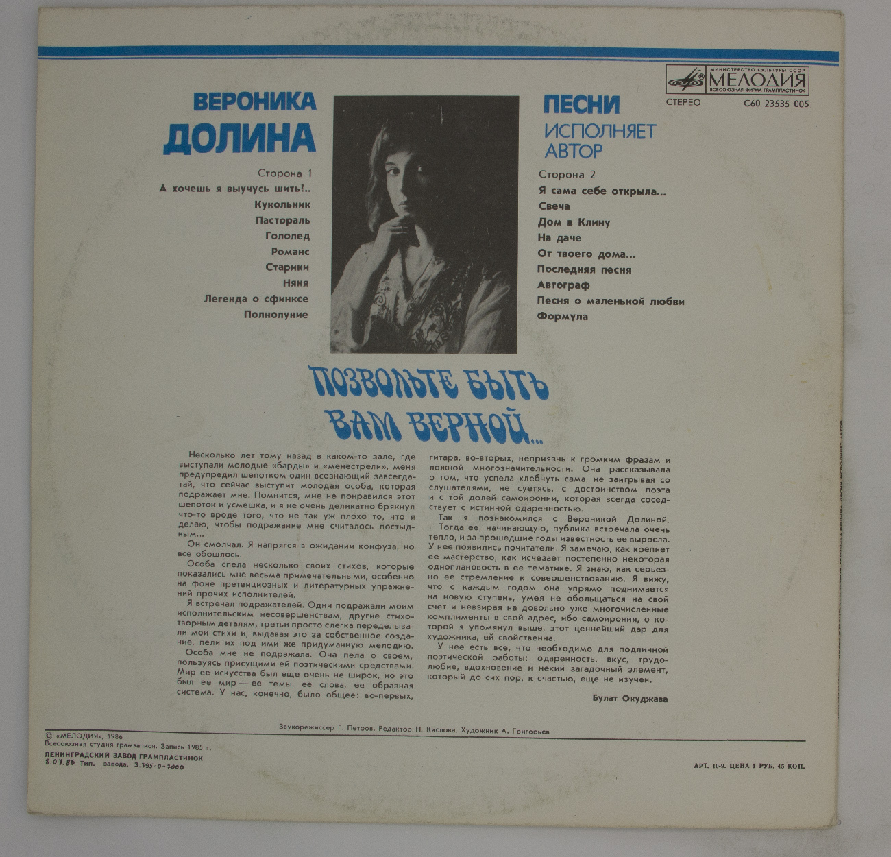 Виниловая пластинка Вероника Долина - Позвольте быть вам верной..., - LP