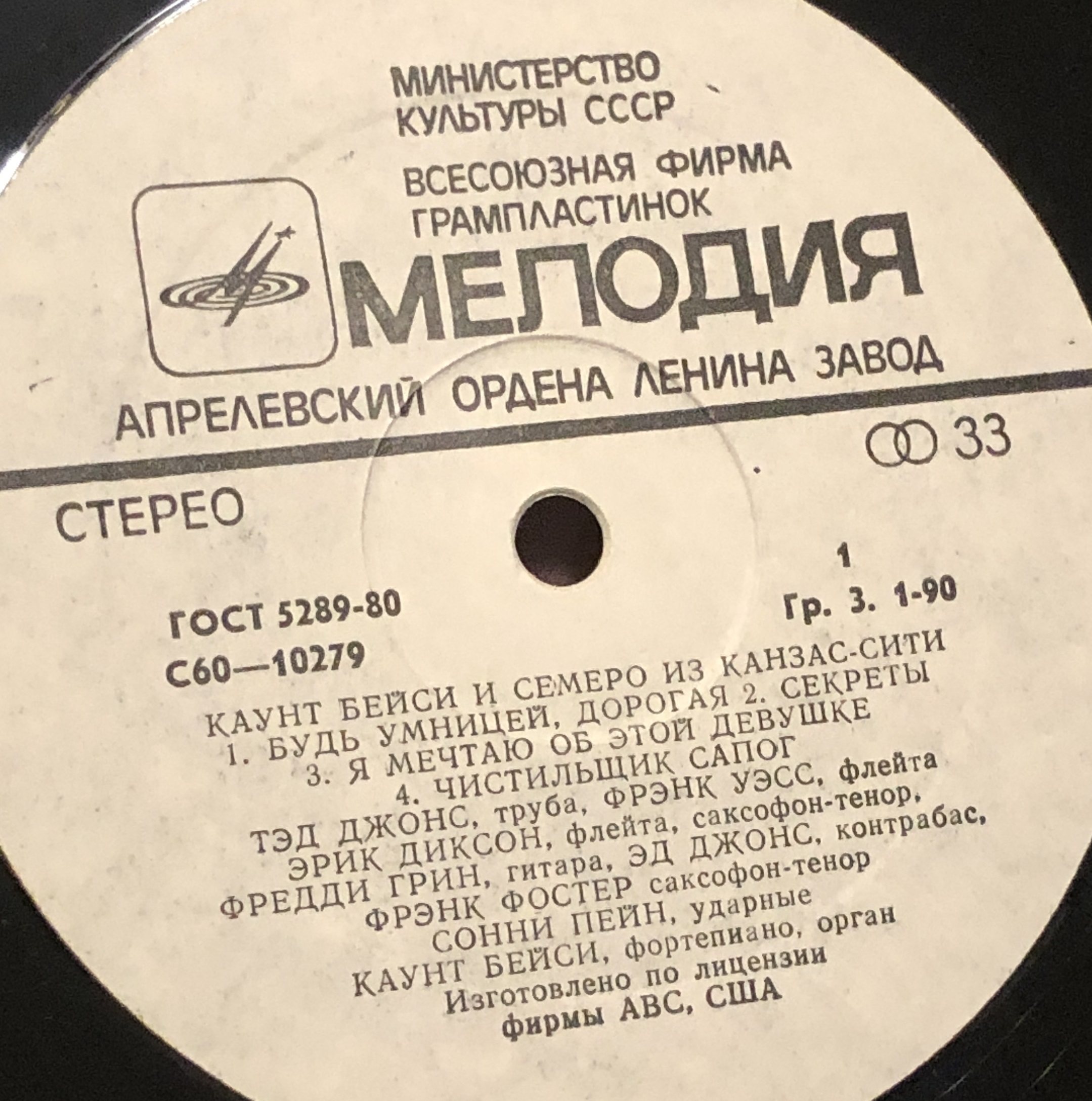Виниловая пластинка Каунт Бейси И Семеро Из Канзас Сити
