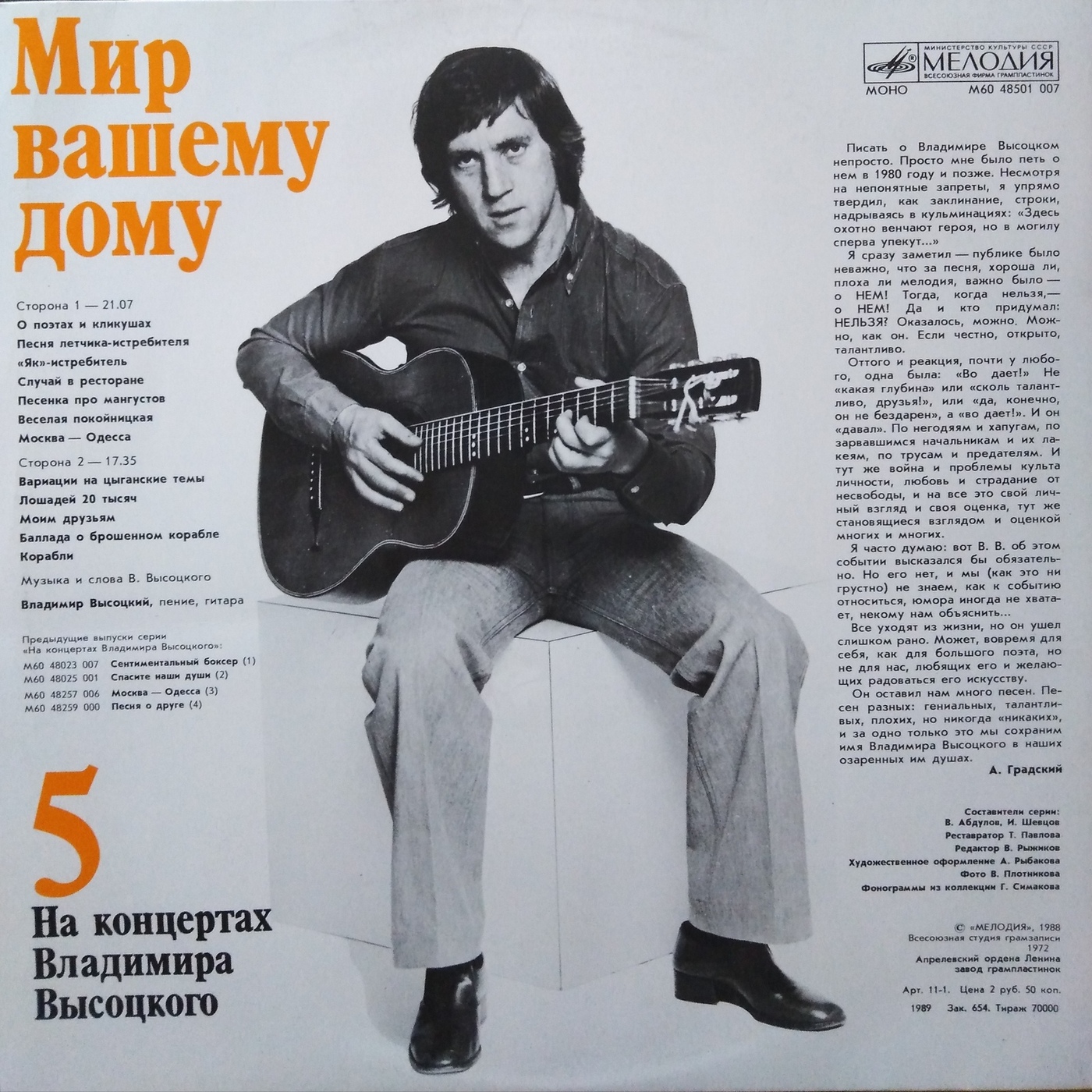 Виниловая пластинка Владимир Высоцкий серия "На концертах Владимира Высоцкого" №5. 1988.