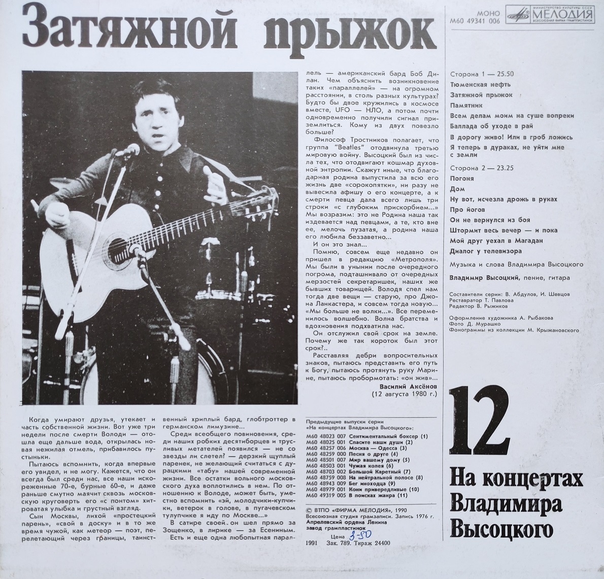 Виниловая пластинка винтажная Виниловая пластинка. На концертах Владимира Высоцкого, часть 12