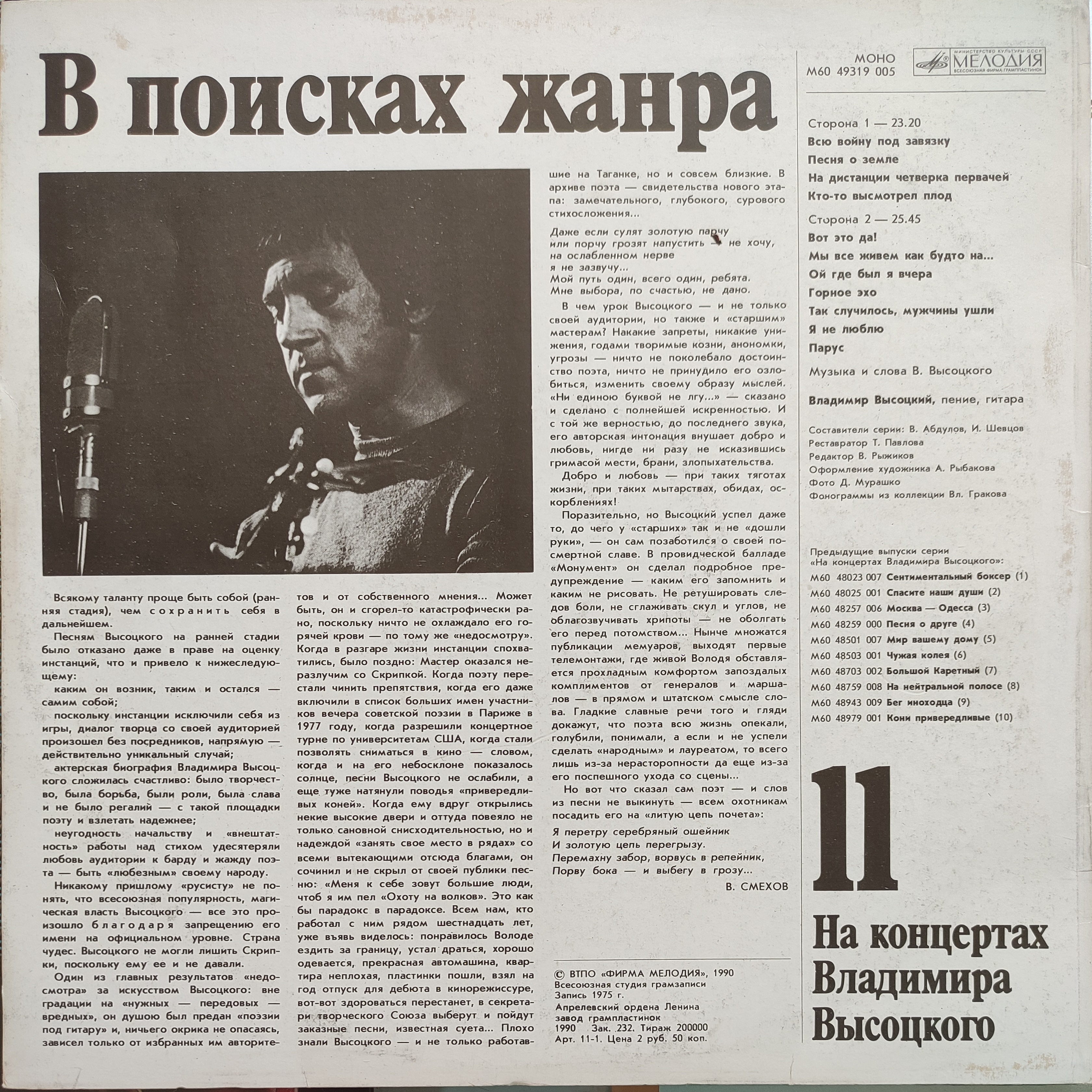 Виниловая пластинка На концертах Владимира Высоцкого- Сборник песен № 11, СОСТОЯНИЕ НОВОЙ.