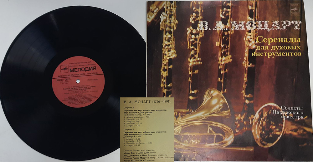 Пластинка виниловая "В. Моцарт. Серенады для духовых инструментов" 300 мм. (Сост. на фото)