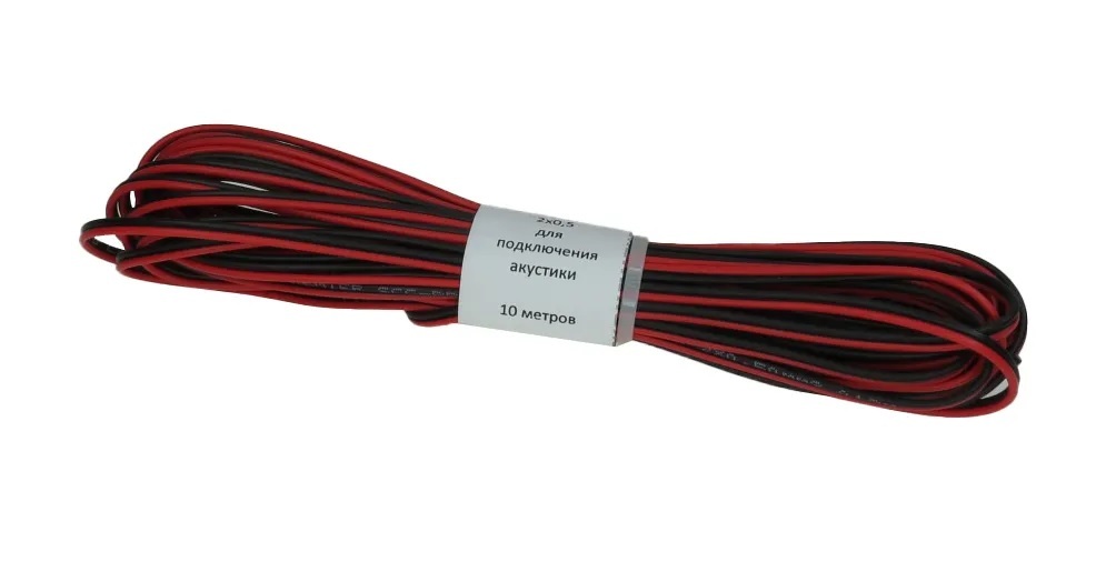 Провод акустический ШВПМ 2х0,5 мм2, длина 10метров, кабель акустический ПГВА-10-0.5, черно-красный