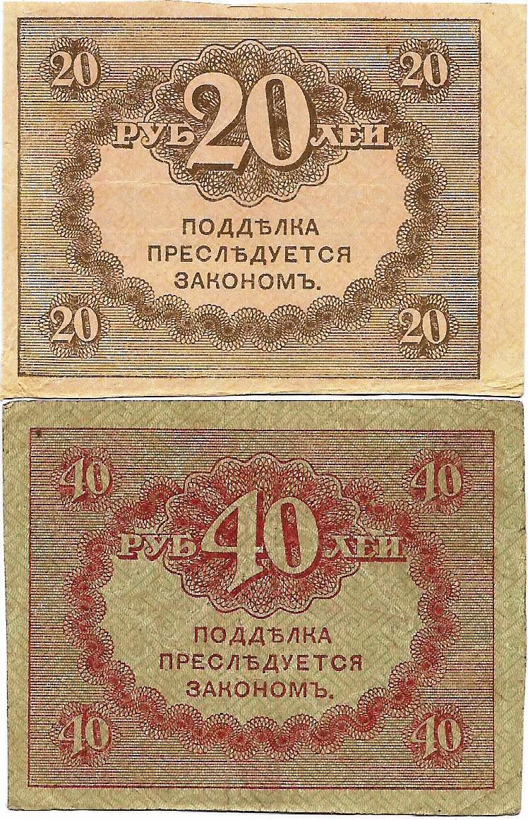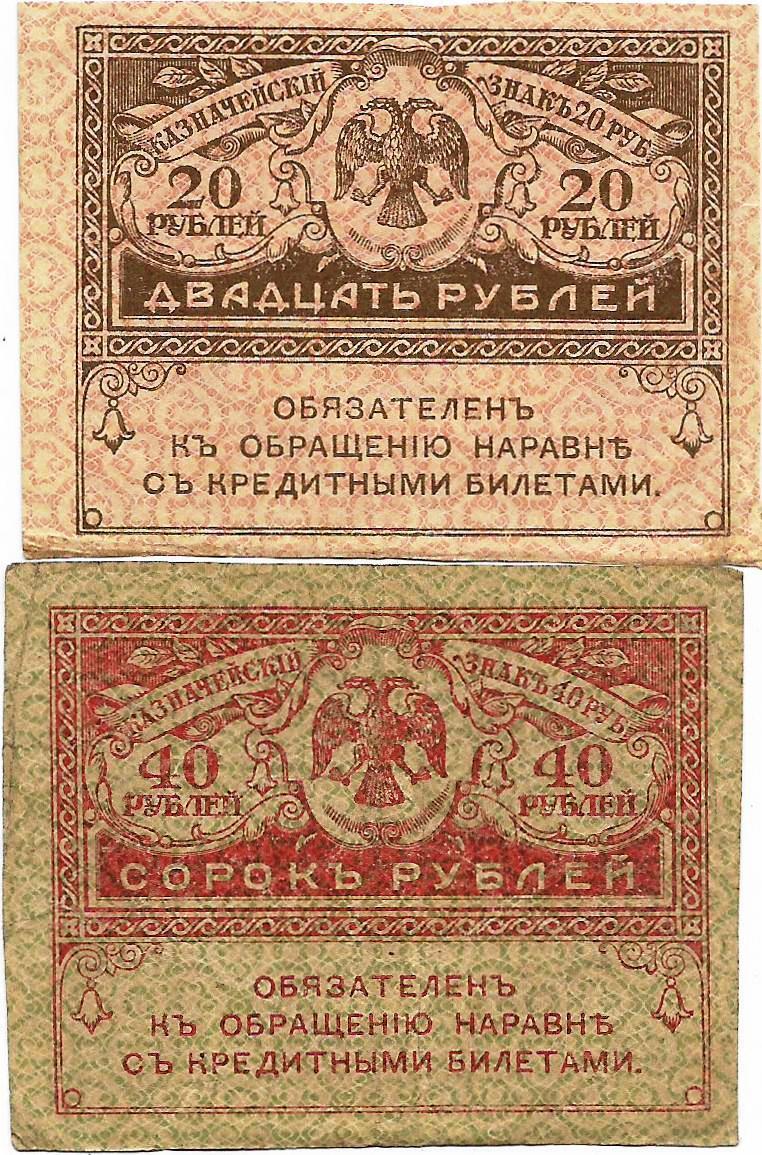 Набор банкнот номиналами 20 и 40 рублей 1917-1919 гг. Керенки.