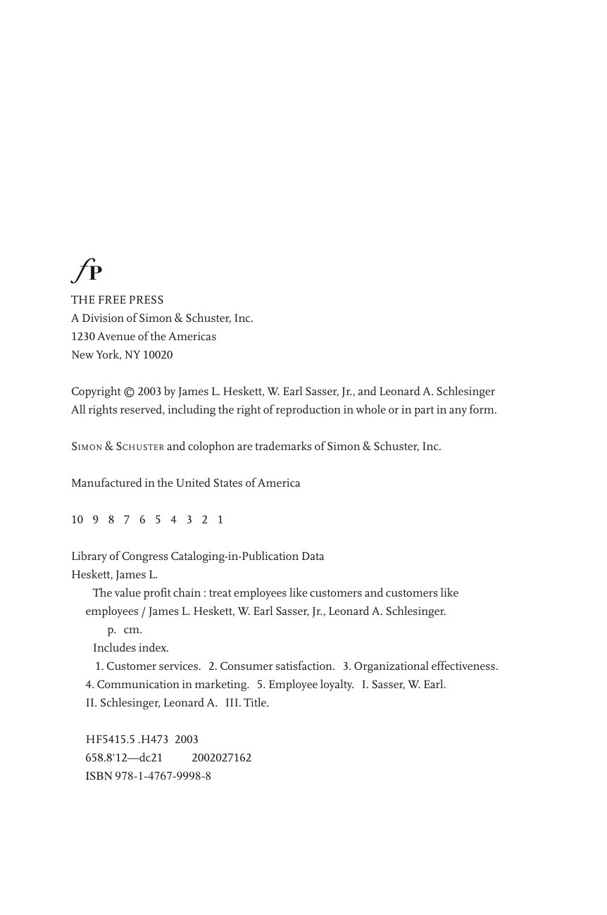 The Value Profit Chain. Treat Employees Like Customers and Customers Like Employees