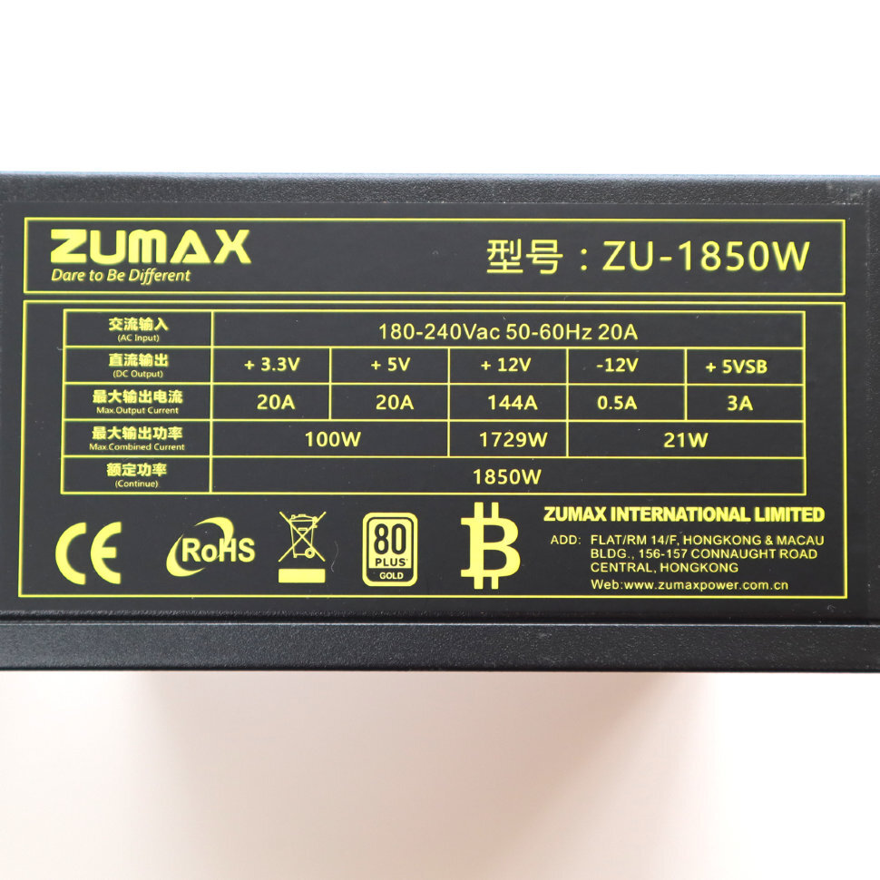 Блок питания 1850W ZUMAX ОБНОВЛЕННЫЙ rev 2.0 для майнинга фермы в 8+ видеокарт