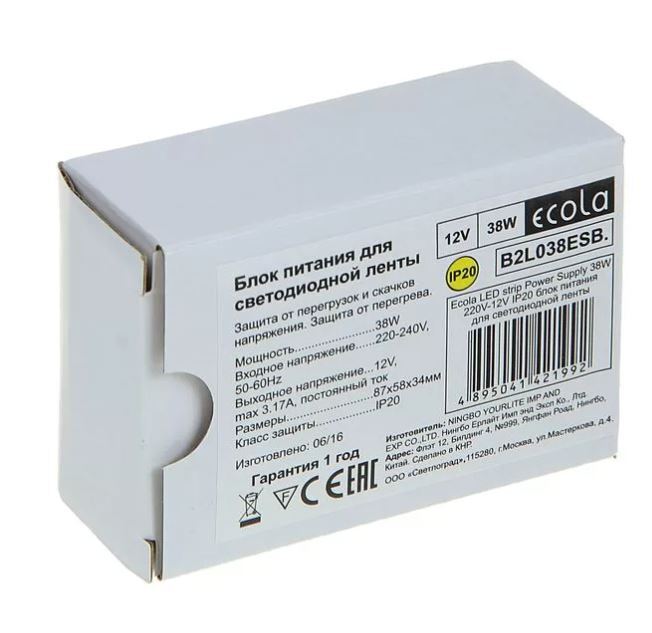 Блок питания для светодиодной ленты , 12В, 48 Вт, IP20