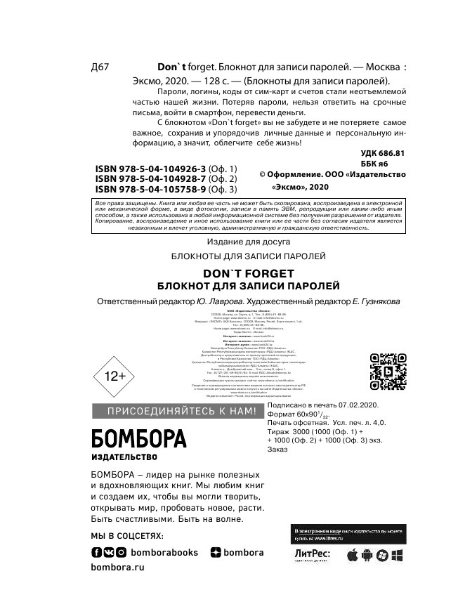 Don' t forget.Блокнот для записи паролей. Оф. 2