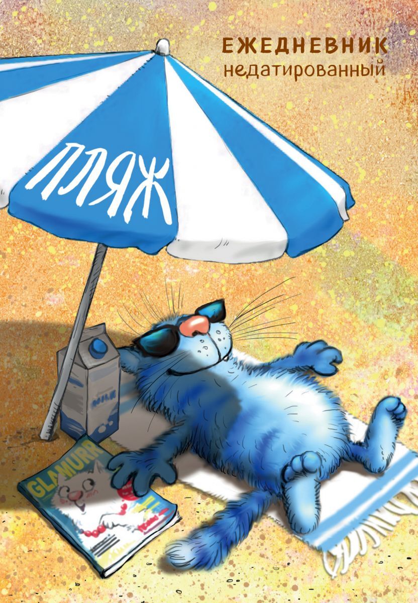 Синие коты. Пляж. Ежедневник недатированный (А5, 72 л.) | Зенюк Рина