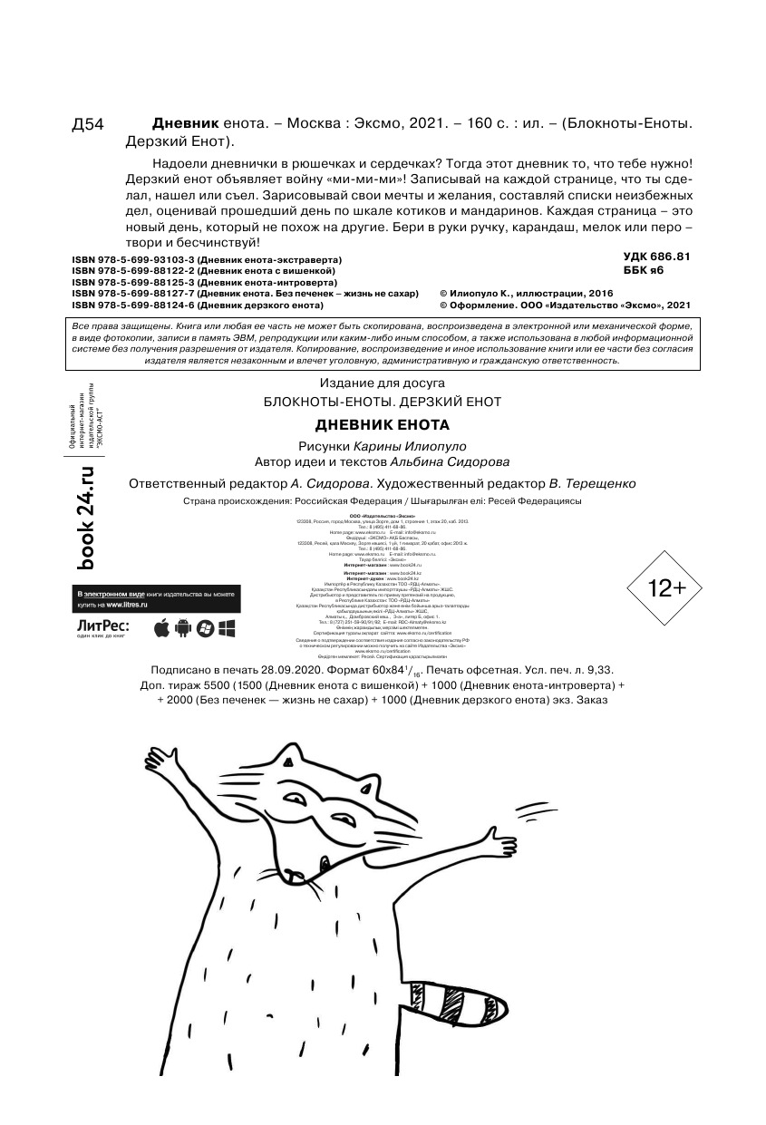 Дневник енота. Без печенек - жизнь не сахар (крафт, твердый переплет)
