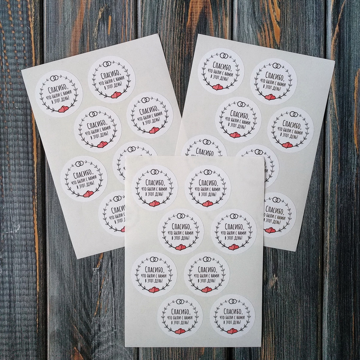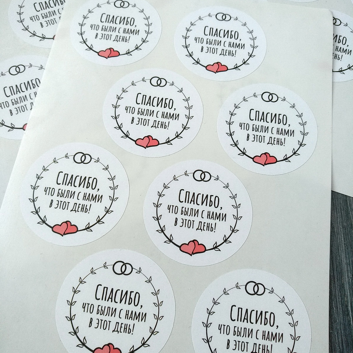 Свадебные наклейки "СПАСИБО!", наклейки на подарки гостям, НАБОР 24шт (35мм)