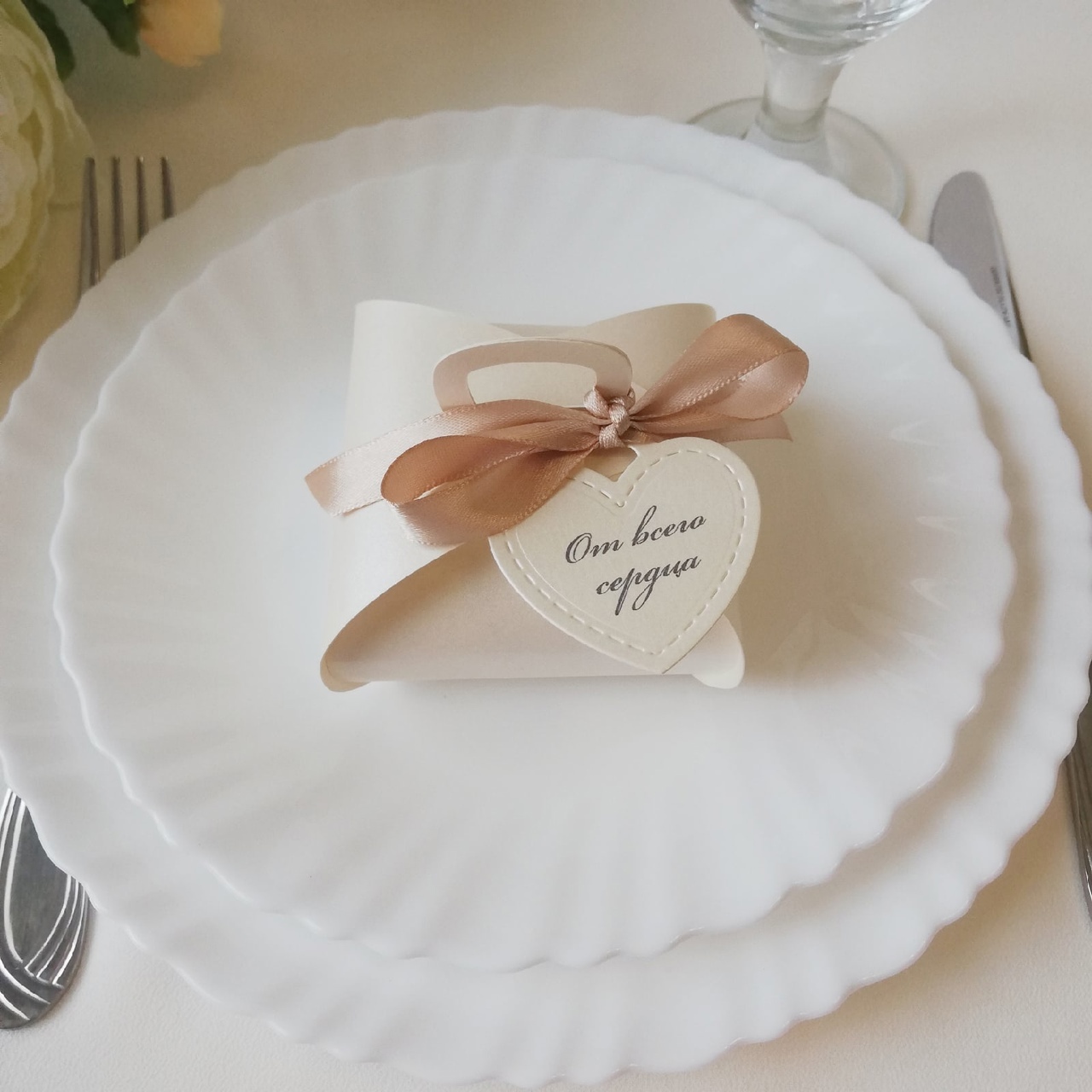 Бонбоньерки "Лепесток" (свадебные коробочки для подарков гостям), 10 шт, кремовые