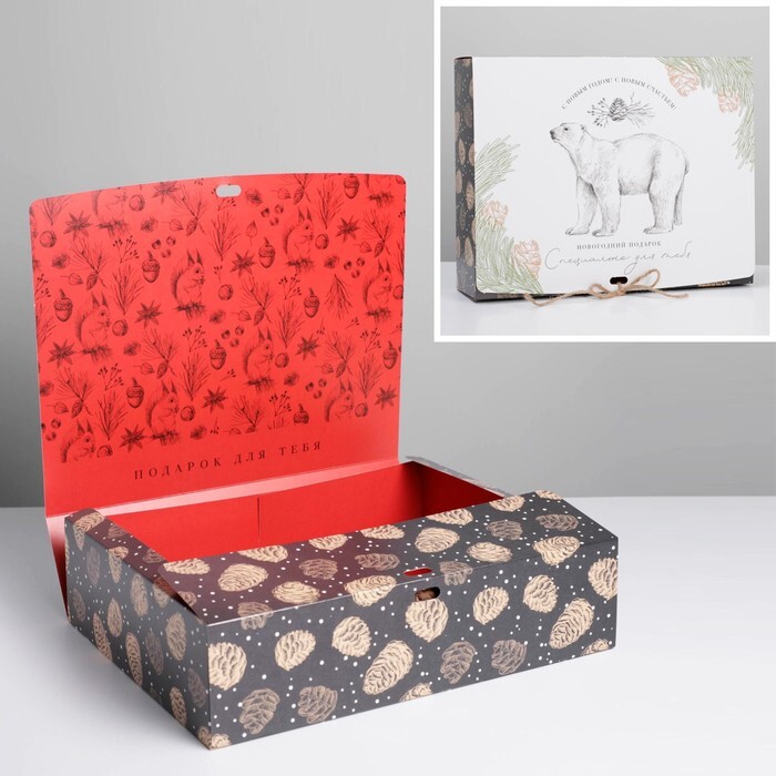 Коробка складная двухсторонняя "Новогодняя ботаника", 31 х 24,5 х 9 см