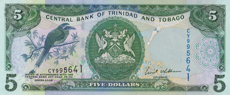 Банкнота номиналом 5 долларов. Тринидад и Тобаго. 2006 год