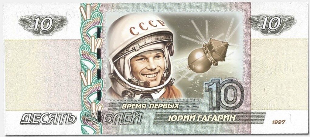 Банкнота 10 рублей 1997 года Время Первых Юрий Гагарин Россия