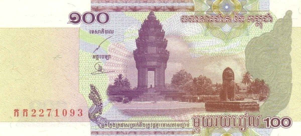 Камбоджа 100 риэлей 2001 г Памятник независимости от Франции UNC