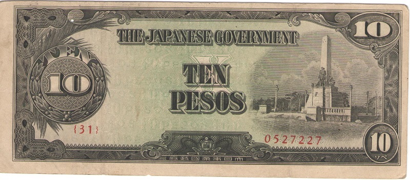 Банкнота номиналом 10 песо. Филиппины. Японская Оккупация. 1943 год