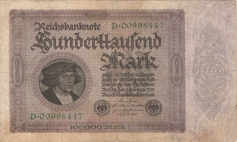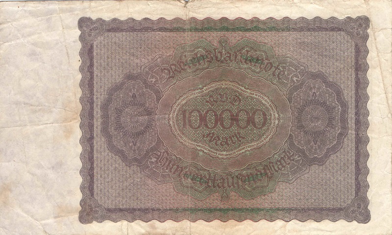 Банкнота номиналом 100000 марок. Германия. 1923 год