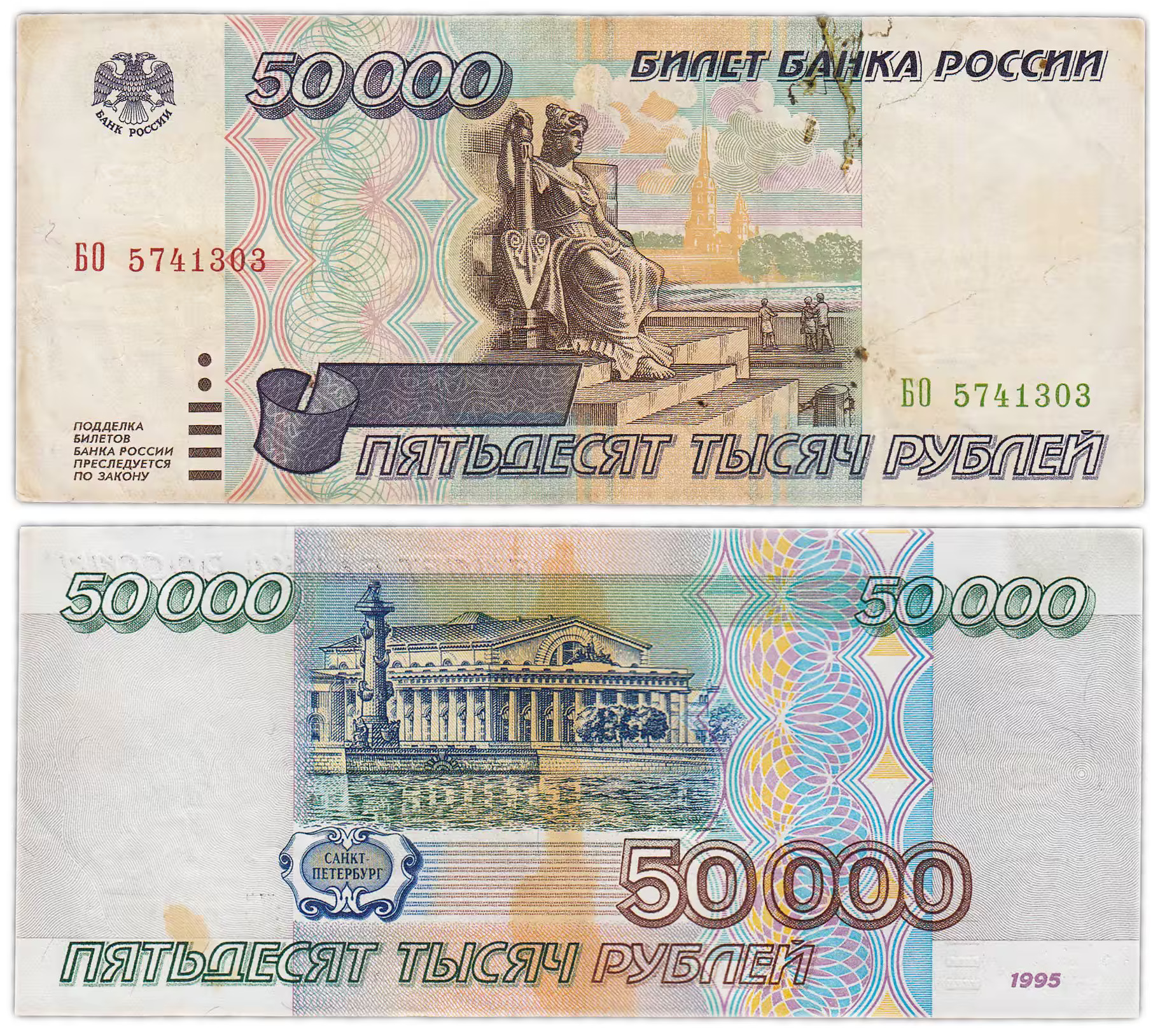 Подлинная банкнота 50000 рублей, Россия, 1995 г. бона/купюра/банкнота