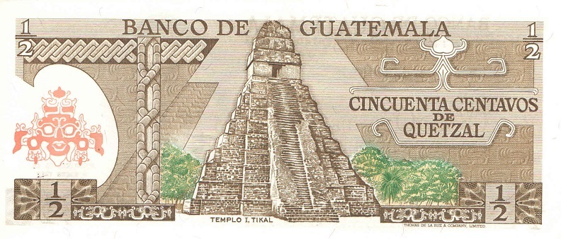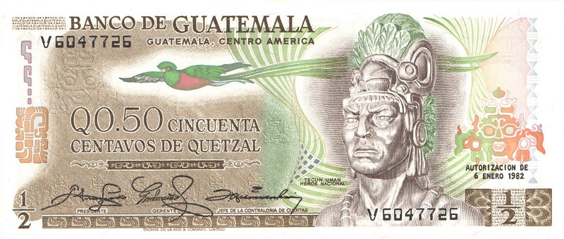 Банкнота номиналом 1/2 кетсаля. Гватемала. 1982 год