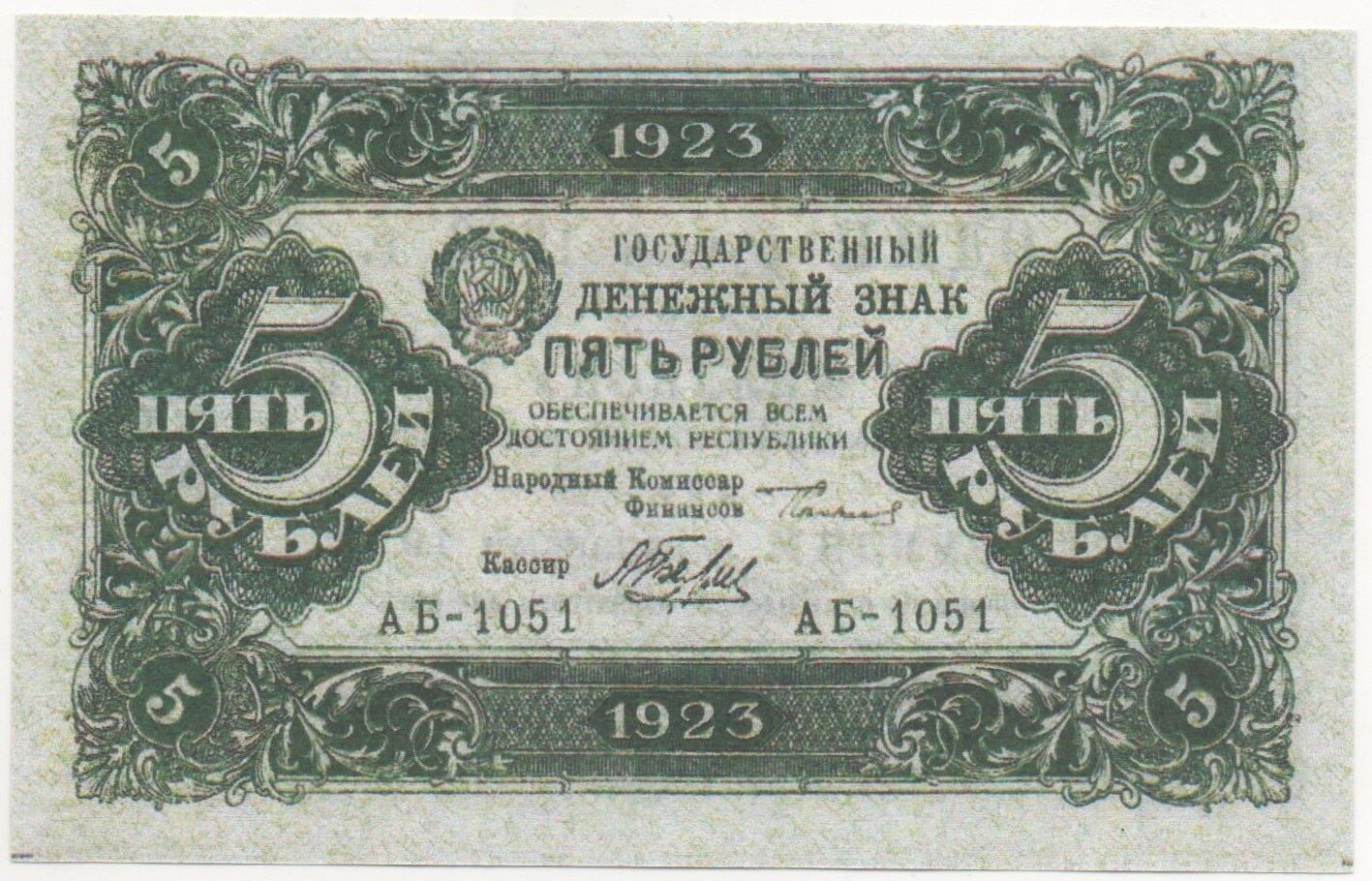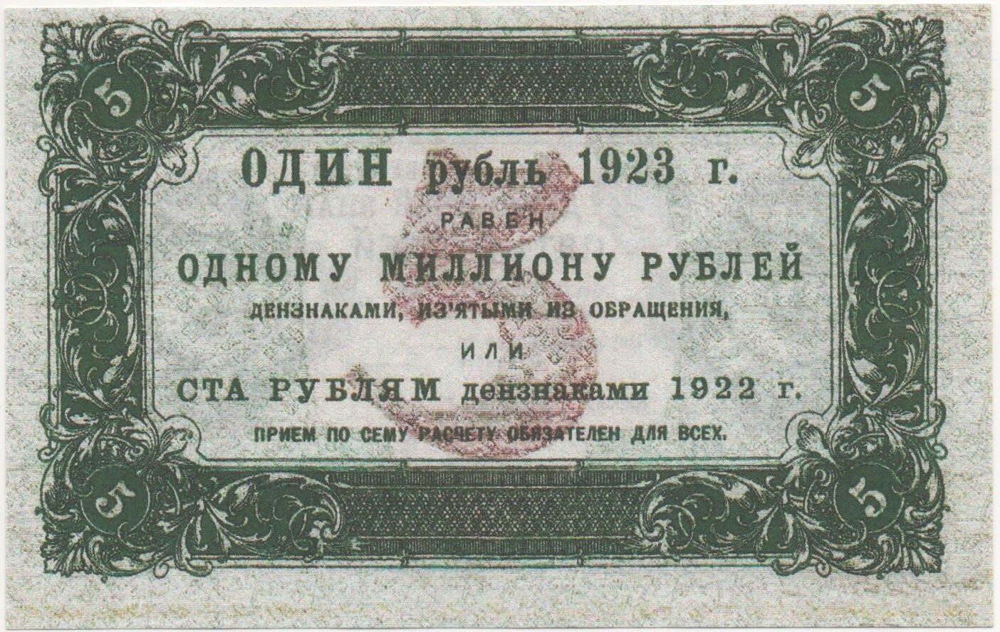 Банкнота 5 рублей 1923 года РСФСР Россия Копия