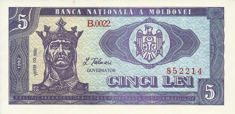 Банкнота номиналом 5 леев. Молдова. 1992 год