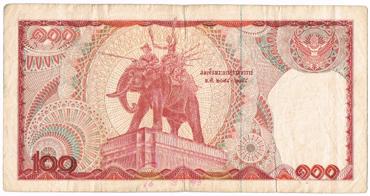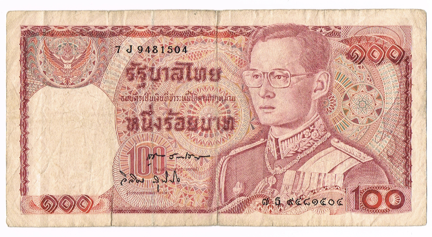 Банкнота 100 бат 1978 г. 7 J 9481504 Королевство Таиланд VF