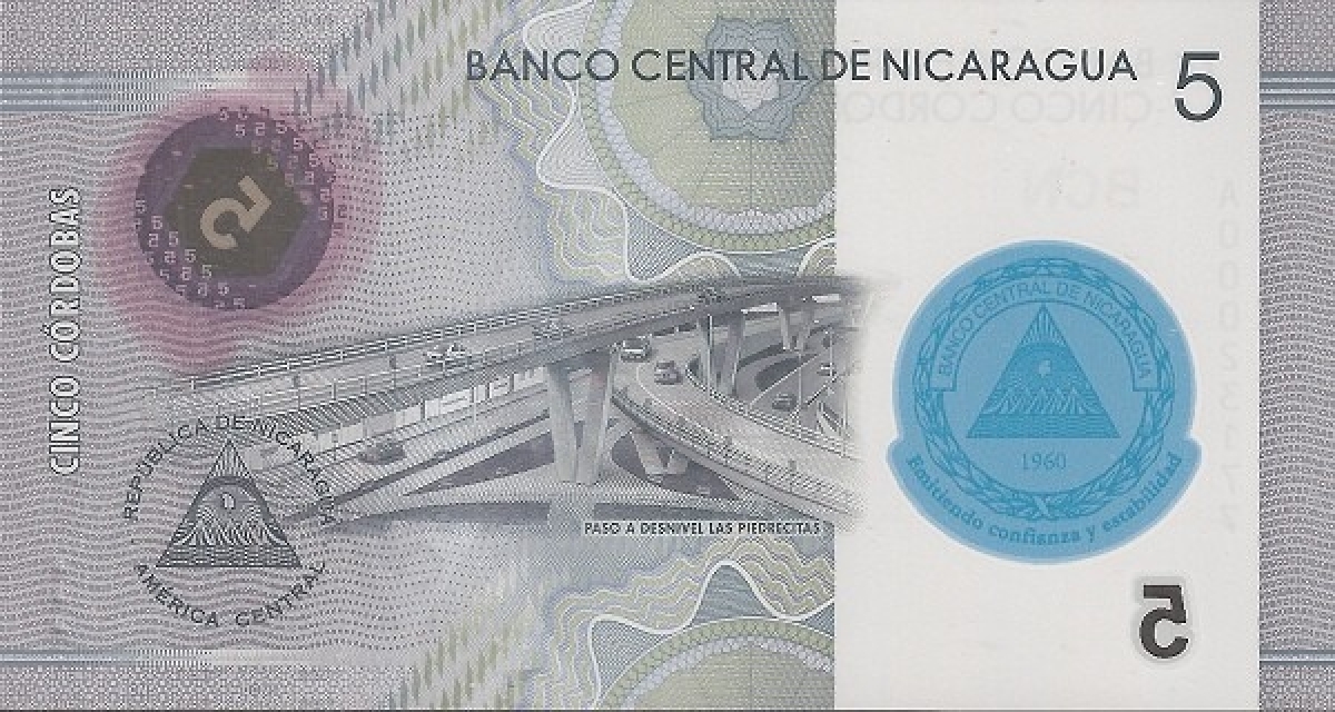 Никарагуа 5 кордоба 2019 г 60-летие Центрального банка Никарагуа UNC Пластиковая / Юбилейная!