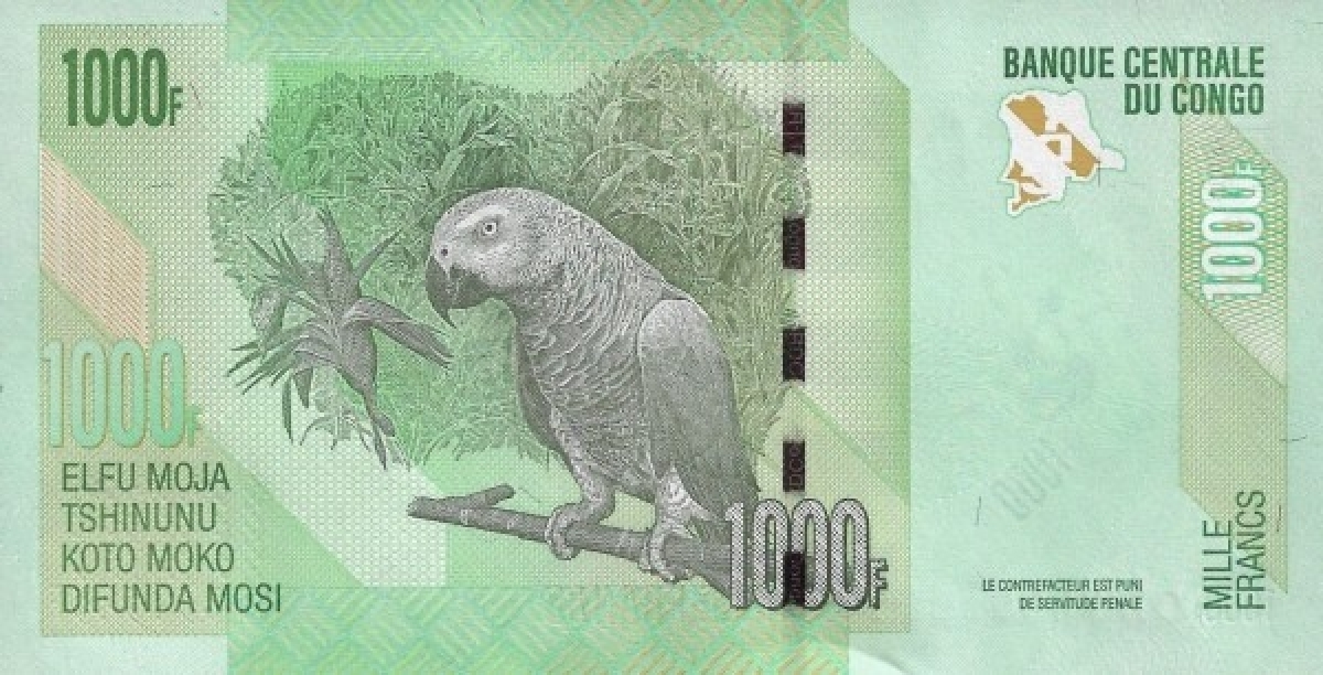 Конго 1000 франков 2020 г Африканский Серый Попугай UNC