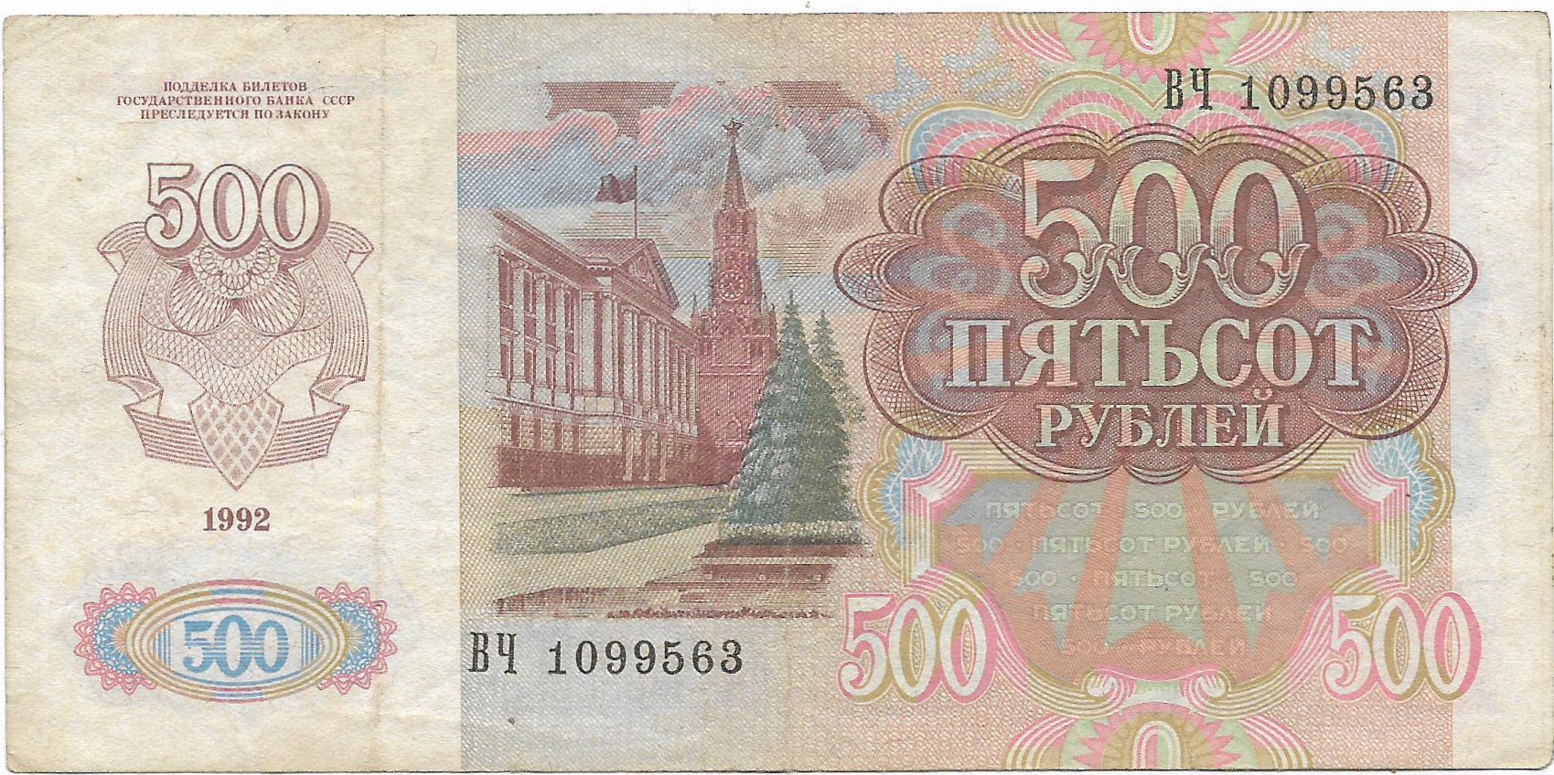 Банкнота 500 рублей 1992 г. Россия (Госбанк СССР).