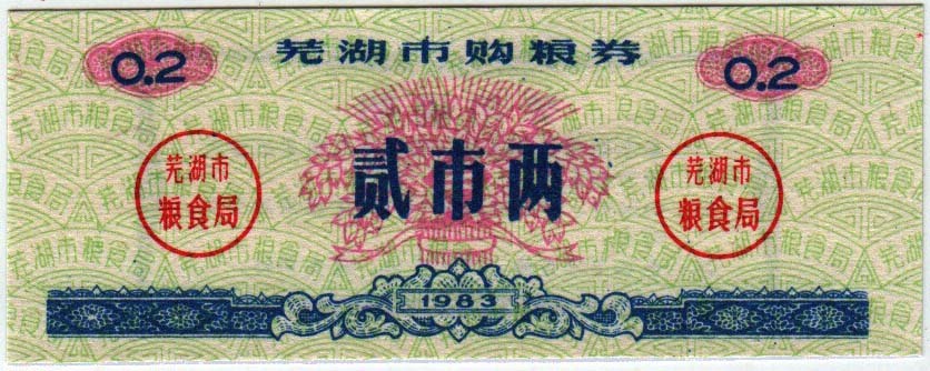 Хлебная карточка Китай 1983 год 0,2 феня (0,002 юань), AU