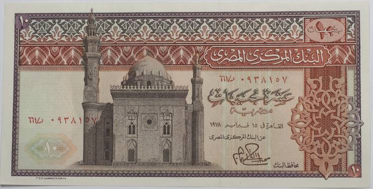 Купюра 10 фунтов Египет 1969-1978 Мечеть Султана Хасана