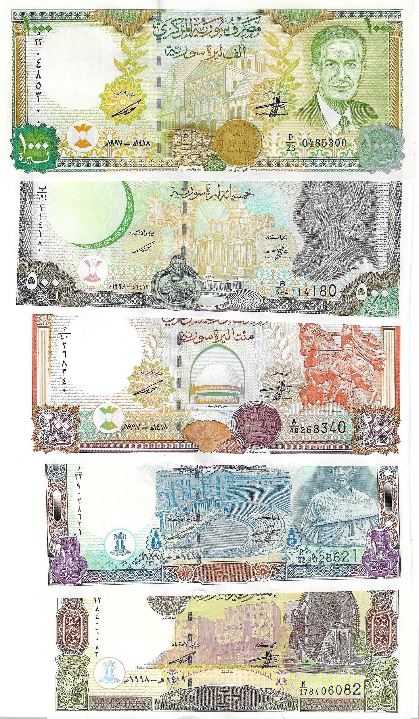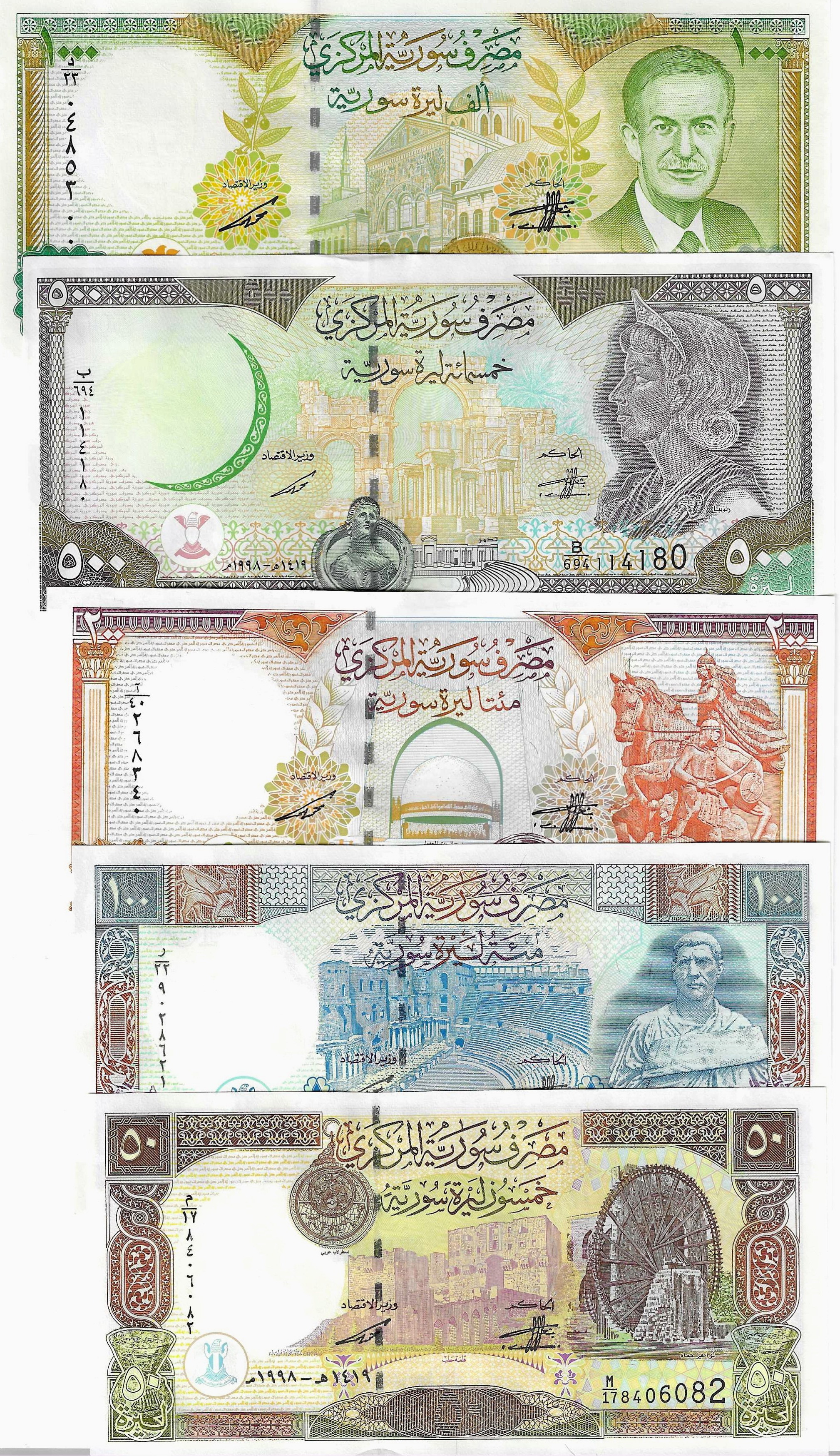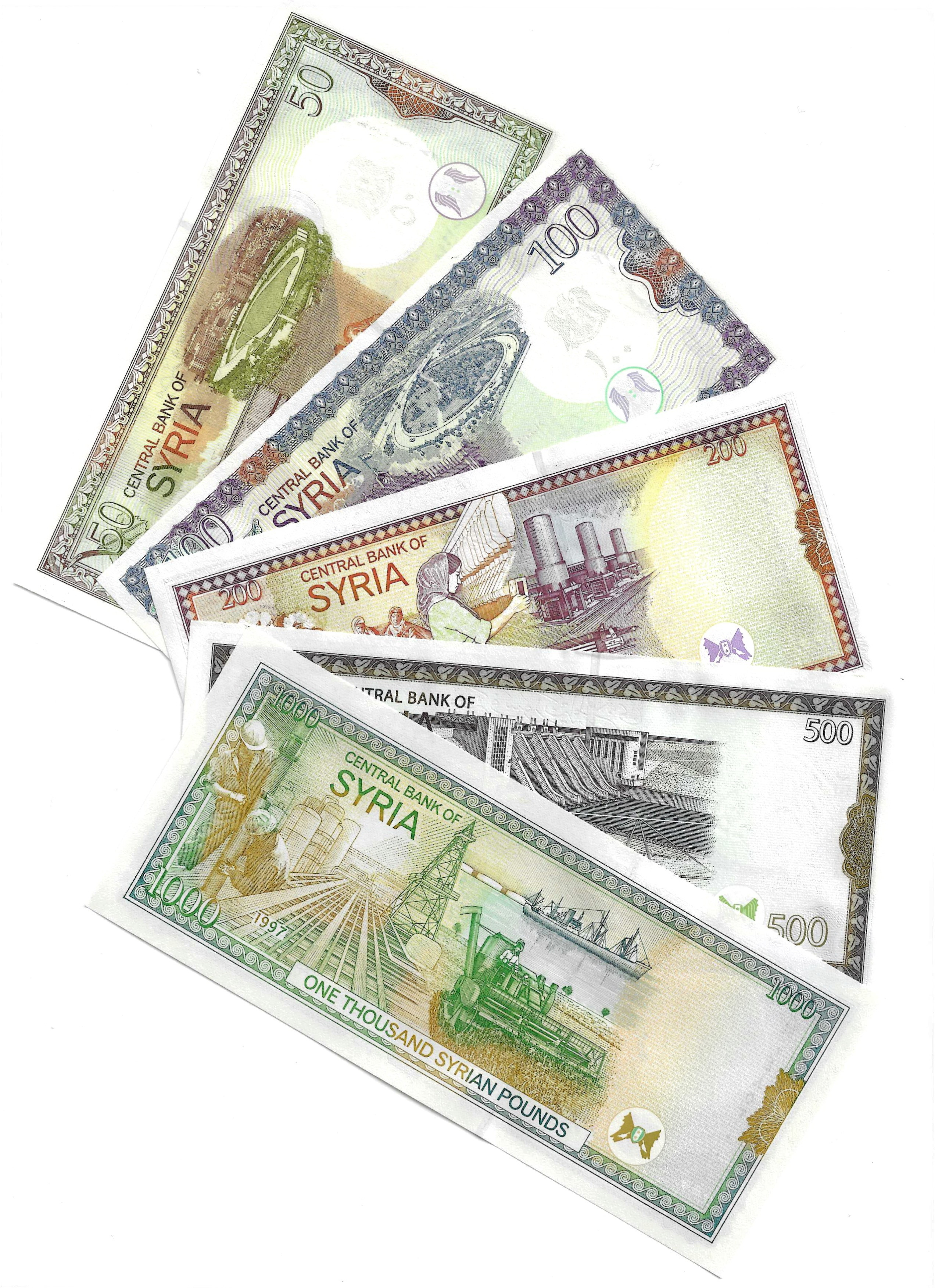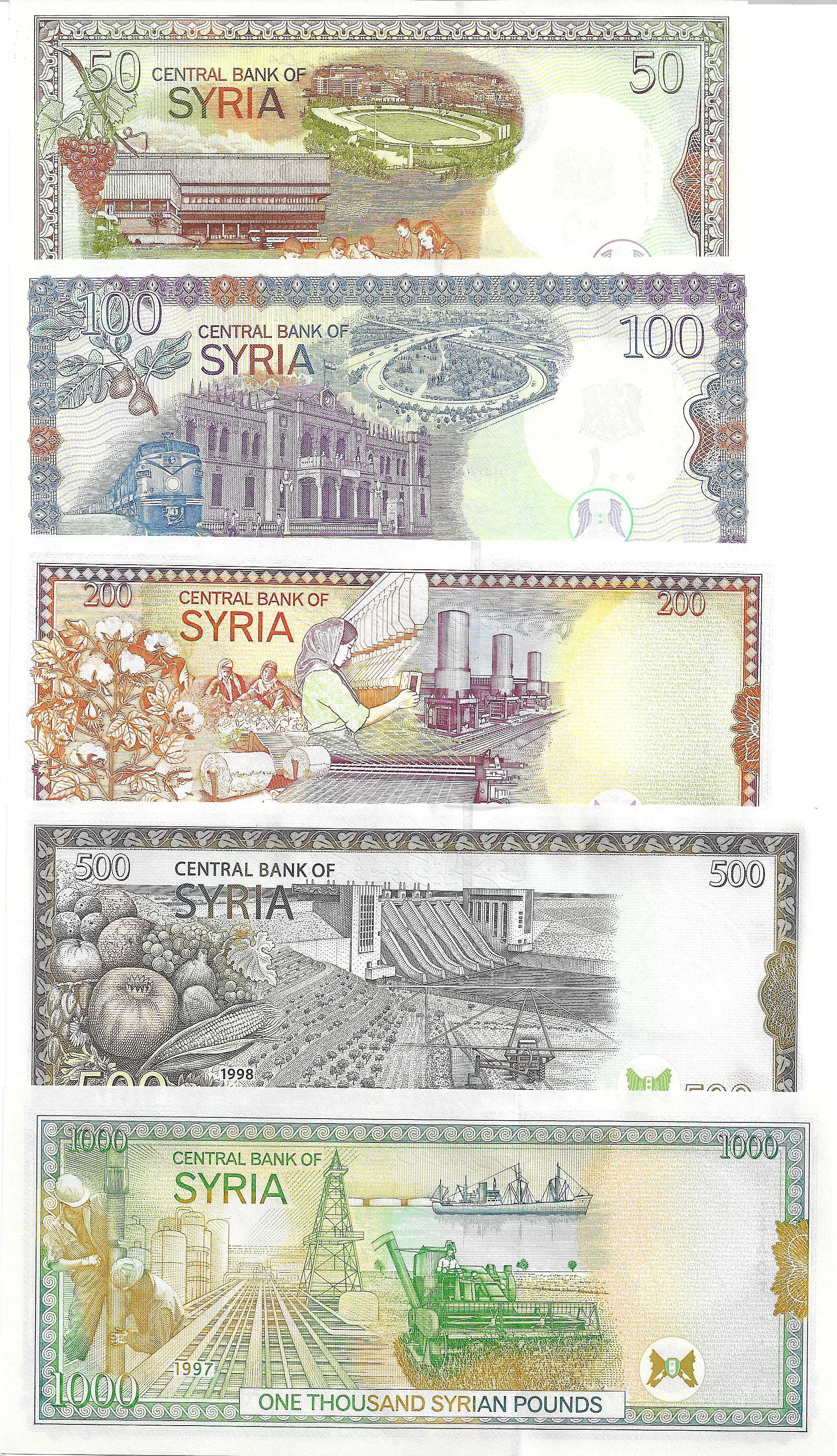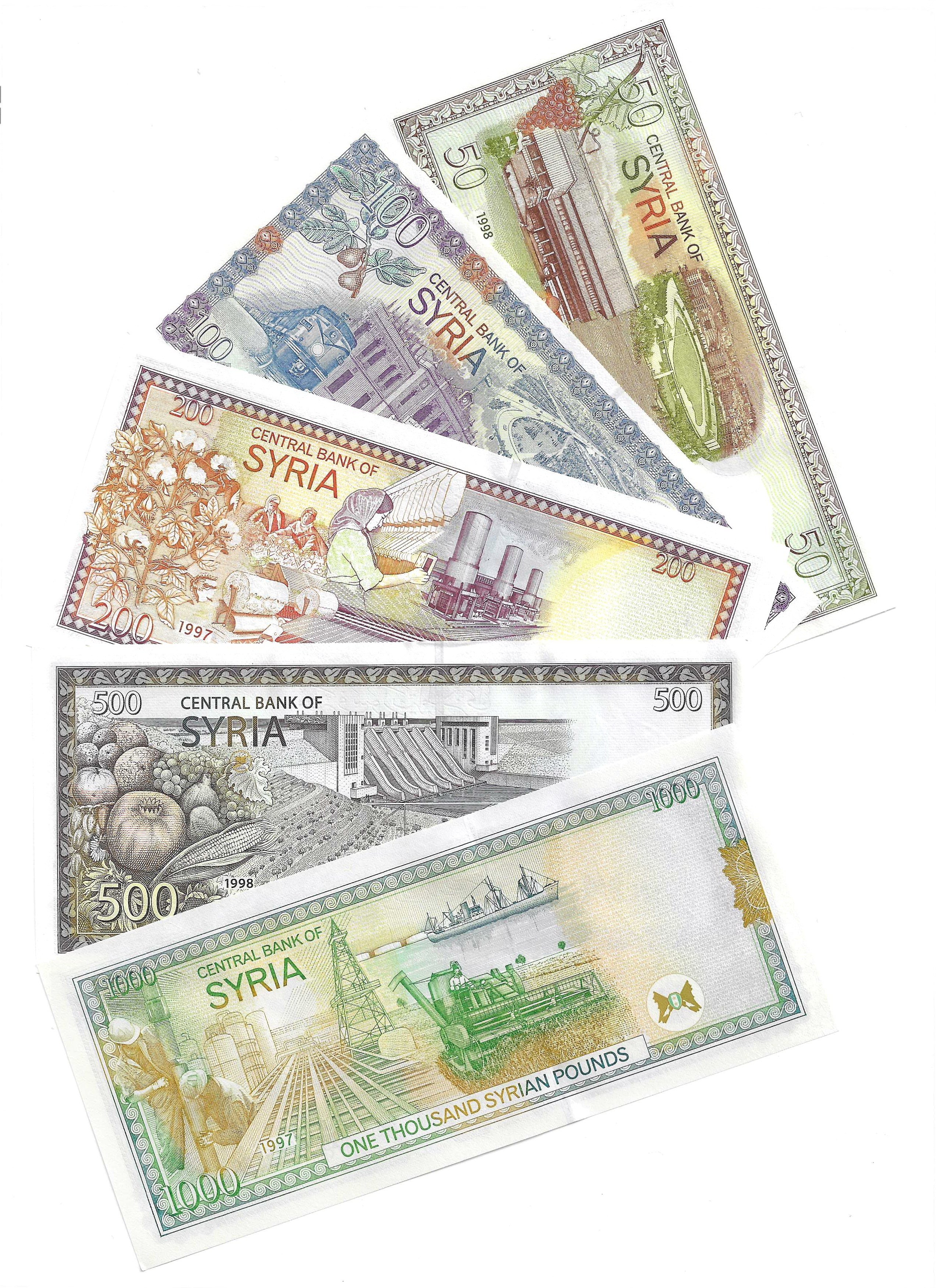 Сирия набор из 5 банкнот (50, 100, 200, 500 и 1000 фунтов) UNC