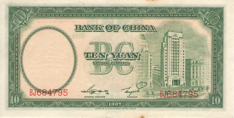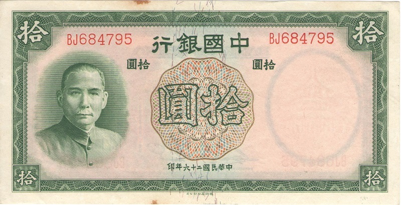 Банкнота номиналом 10 юаней. Китай. 1937 год