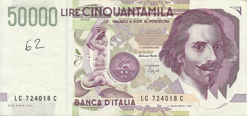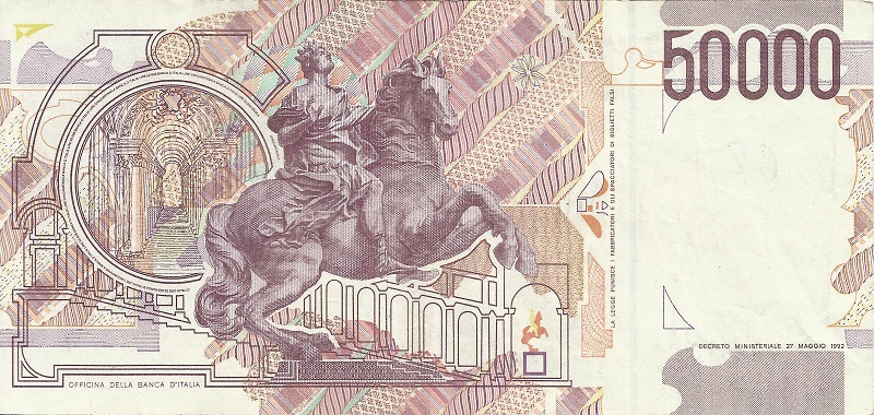 Банкнота номиналом 50 000 лир. Италия. 1992 год