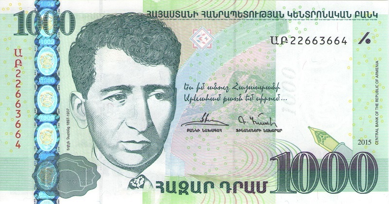 Банкнота номиналом 1000 драм. Армения, 2015 год