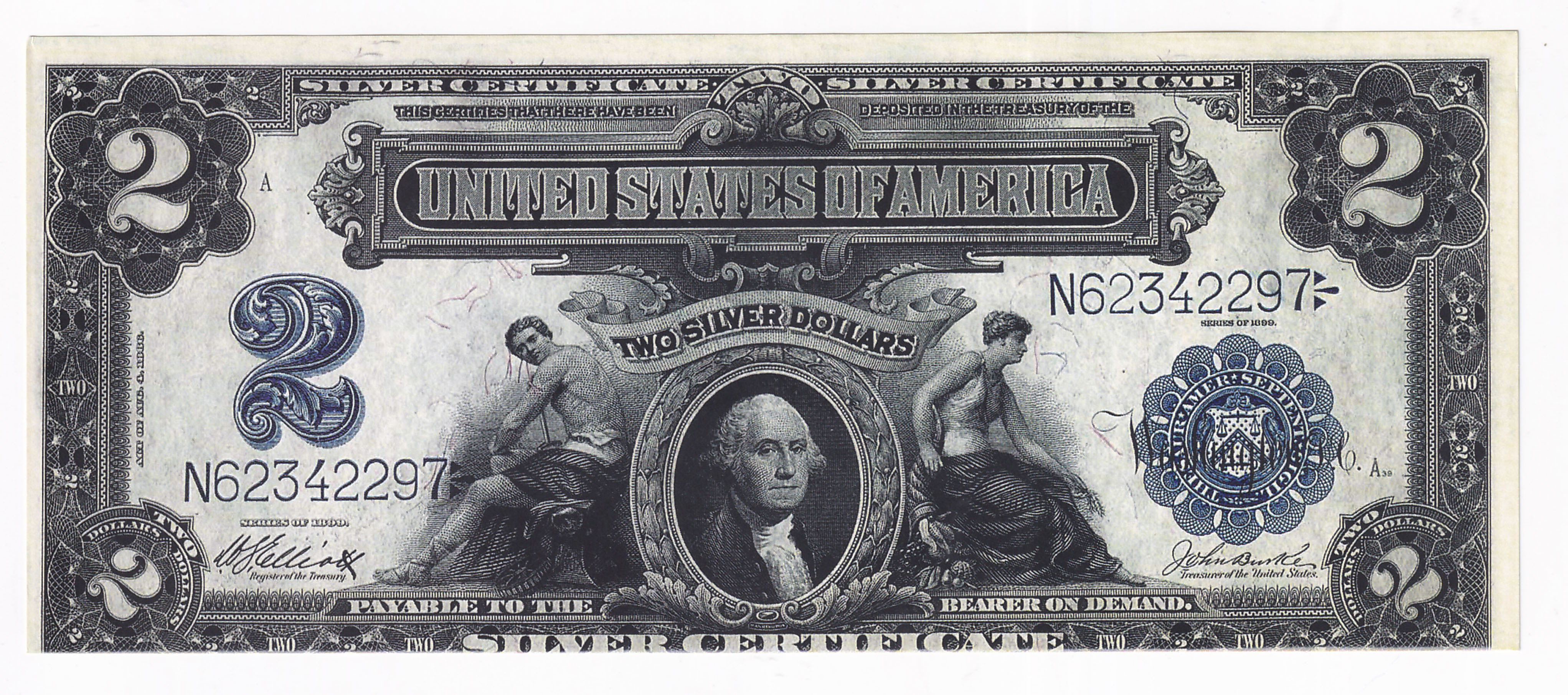 Банкнота 2 доллара 1886г копия.