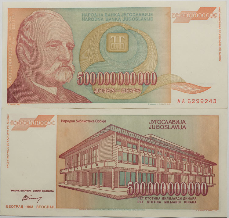 Купюра 500 000 000 000 динар Югославия 1993 Йован Йованович